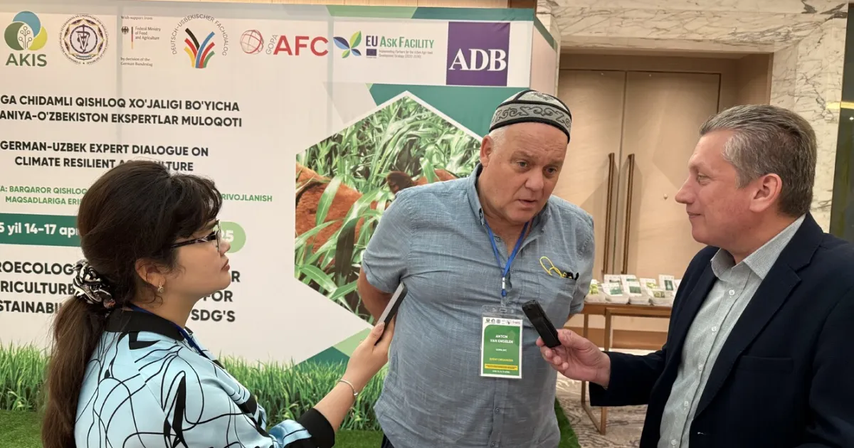 The conference started on April 14, 2025, at the Hilton Hotel in Tashkent. Deputy Minister Alisher Shukurov opened the conference and stressed the importance of a response to climate change. Mr. Clemens Schwanhold from the German Embassy delivered an introductory speech, outlining the purpose of the BMEL funded expert dialogue programmes, emphasizing agro-ecology as the guiding principle in BMEL’s policy and strategies, and detailing the objectives of the event. Khandam Kharsiboev, the deputy team leader of the programme, gave a short introduction to what the programme intends to achieve with pictures as ‘proof of concept’. Besides these, several speakers from Zimbabwe, Australia, Afghanistan, the Netherlands, Germany, Estonia and of course Uzbekistan were invited to give insights to different topics like pasture management, irrigation, regenerative agriculture, importance of soil biology, principles of the market economy in determining crop rotation etc.